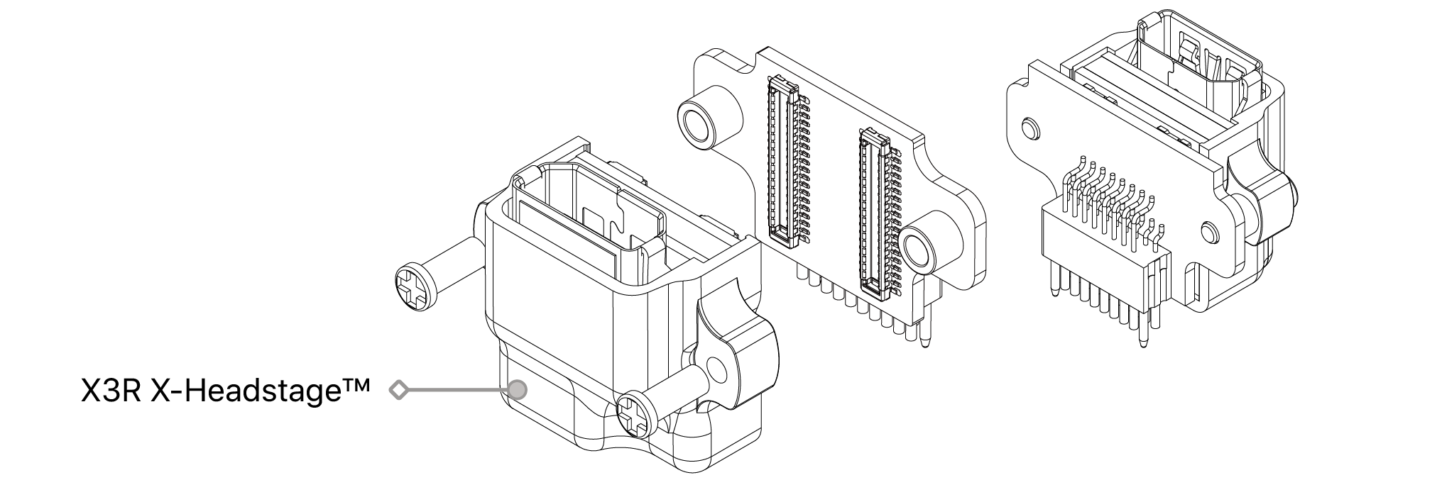 This adapter is designed to interface X3R32/64 headstages with probes that have a 16-channel Omnetics connector. The vertical design raises the connector, creating additional space near the craniotomy and potentially allowing more room for implants.
