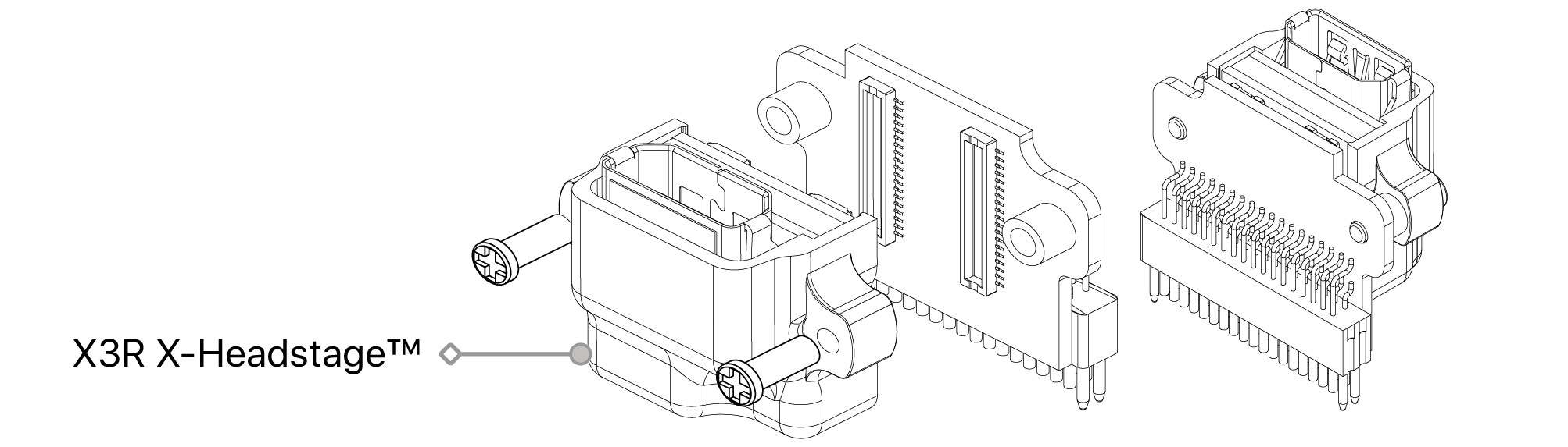 designed to interface X3R32/64 headstages with probes that have a 32-channel Omnetics connector. The original version includes a screw-locking mechanism while maintaining a compact footprint. No locking-offering a minimal footprint for space-constrained setups./ Vertical-raises the connector, creating additional space near the craniotomy and potentially allowing more room for implants.